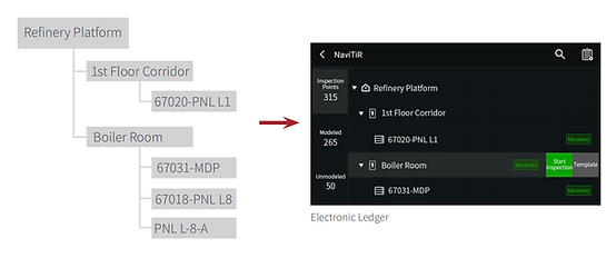 Puede identificar fácilmente los dispositivos en su lista escaneando sus pegatinas de código QR generadas desde NaviTiR y luego diagnosticar los puntos objetivo haciendo coincidir automáticamente la imagen visual. Los códigos específicos de la industria se pueden ingresar por adelantado, lo que permite un diagnóstico en tiempo real en el campo con cuatro niveles de alerta. Además, también puede modificar el diagnóstico en la cámara y agregar comentarios si es necesario.