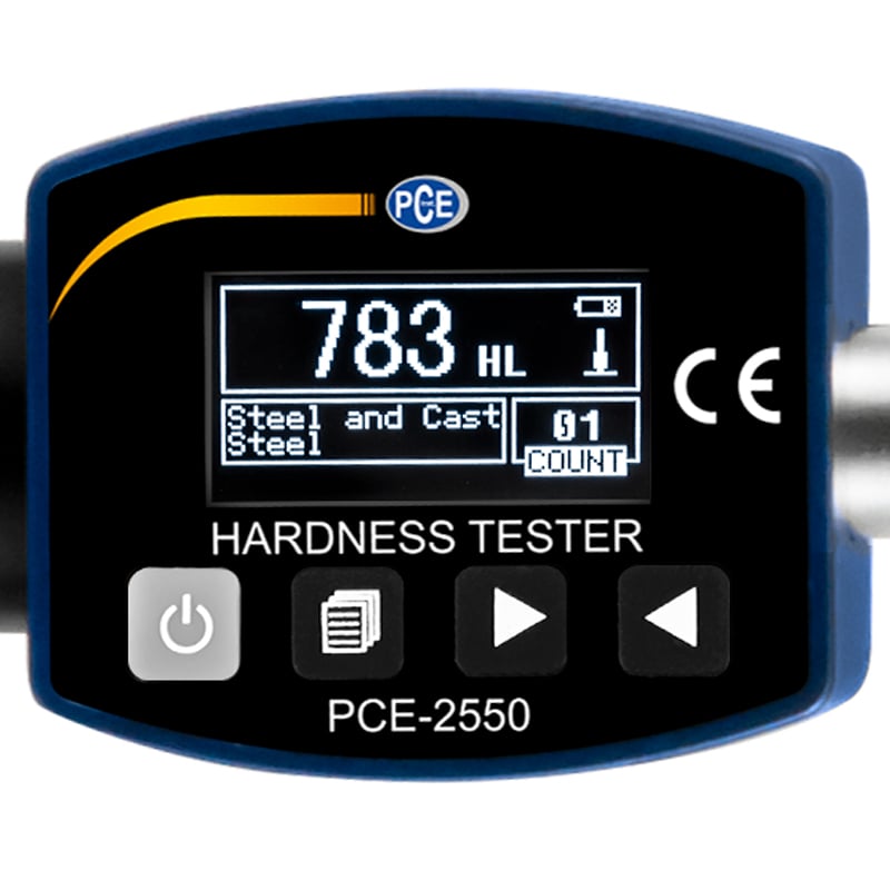 El durometro PCE-2550 permite almacenar los datos en su memoria interna y analizarlos posteriormente a través del software disponible. Puede guardar hasta 350 grupos de datos en el durómetro para metales. La pantalla OLED permite leer los valores incluso en zonas oscuras.