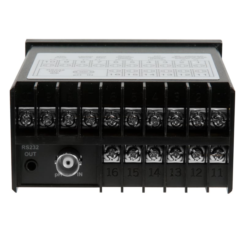 Puede conectar a este regulador un electrodo de pH con conexión BNC. Los bornes del pH-metro permiten conectar una sonda de temperatura para compensar la temperatura de forma automática. El pH-metro se usa sobre todo en la galvanotecnia, en piscifactorías, el tratamiento de agua o para aguas residuales. Las compactas dimensiones permiten instalar el pH-metro en cualquier panel.