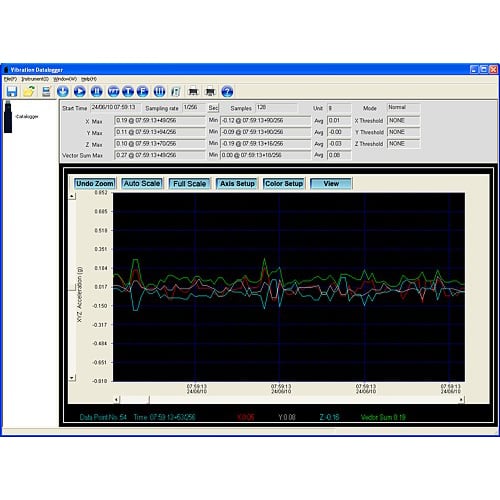 Registrador de datos con análisis FFT / mide aceleración en los ejes / rango de medición ±16 g / rango de frecuencia de 0 a 60 Hz / incluye soporte para pared